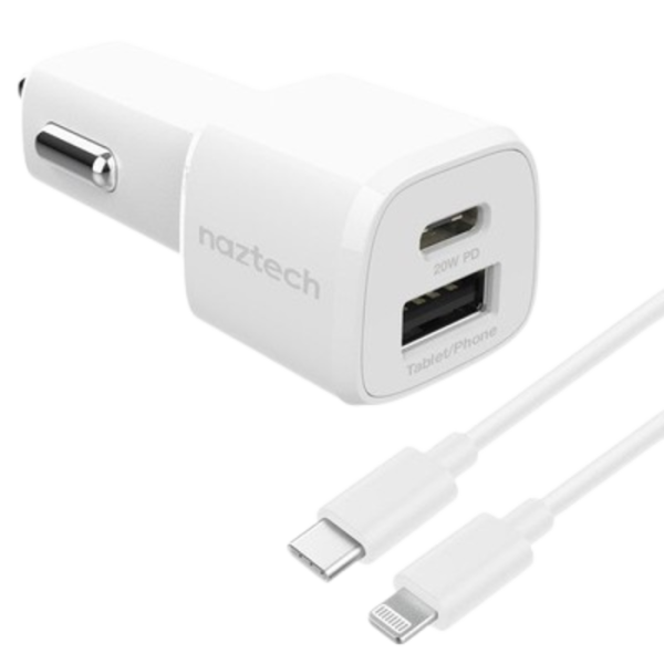 Naztech 20W PD + 12W USB Fast Car Charger Kit (Lightning)