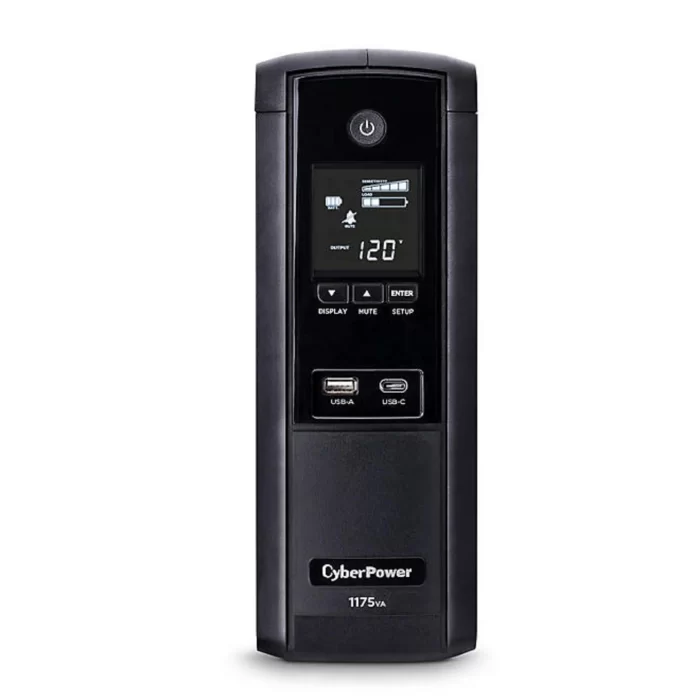 El CyberPower S1175UC es un sistema de alimentación ininterrumpida (UPS) de alto rendimiento, diseñado para proteger equipos electrónicos críticos contra apagones, caídas de voltaje y sobretensiones. Con una capacidad de 1175VA y 600W, ofrece el tiempo de respaldo necesario para realizar un apagado seguro de computadoras, consolas de videojuegos y sistemas de red. Este modelo destaca por su pantalla LCD multifunción, que proporciona información en tiempo real sobre el estado de la batería y la carga conectada. Además, incorpora puertos de carga frontal (USB-A y USB-C), permitiendo cargar dispositivos móviles de forma cómoda y rápida incluso durante una falla eléctrica. Su diseño compacto y eficiente lo convierte en la protección ideal para estaciones de trabajo domésticas y sistemas de entretenimiento profesional.